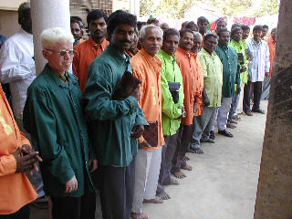 Pastors show off their gift shirts from the UK